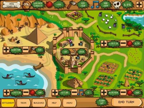 古典的旋律让游戏更富异国韵味,独特的节奏带动我们深入游戏的氛围之中。游戏采用鼠标操控,玩法简单直观,你将控制十二个远古的文明之一。你的目标是在规定的时间结束之前征服远古的世界。每个文明都有不同的能力和弱点,游戏在玩法上也模拟了它们的历史,而且每个文明也需要用完全不同的方式达成游戏。