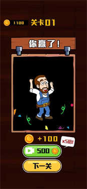 2.通关之后会获得金币奖励,如果观看视频的话,还可以获得相应倍数的金币。