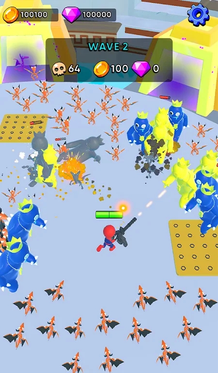 基地防御彩虹生存是一款放置塔防射击的解压小游戏,将彩虹朋友的元素融入其中,玩家需要操控橡胶人战士,击败所有入侵的彩虹怪物。整个游戏都会通过上帝视角的方式让玩家操作,无限射击的疯狂对战,以及对作战基地的经营与建设都很重要,无限制的玩法模式相信也会让众多玩家都非常喜欢的。