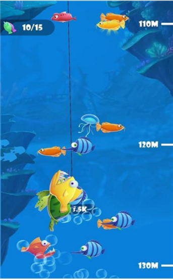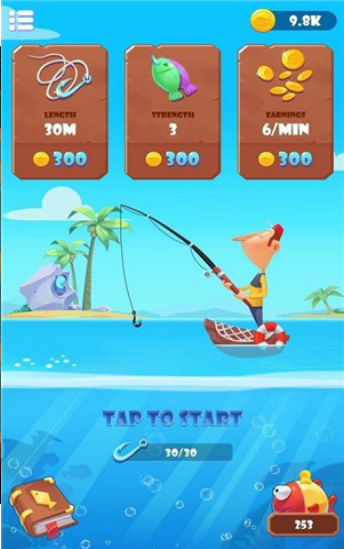 1.各种各样不同的美丽的鱼类等你解锁,你必须要不断的升级你的鱼竿潜入更深的海底;