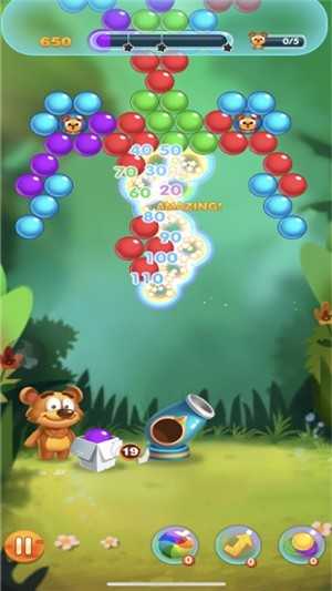 反弹:利用反弹可以消除更上层的泡泡,上层的泡泡被消除掉后,下层的泡泡也会随着一起掉落,能取得更高得分