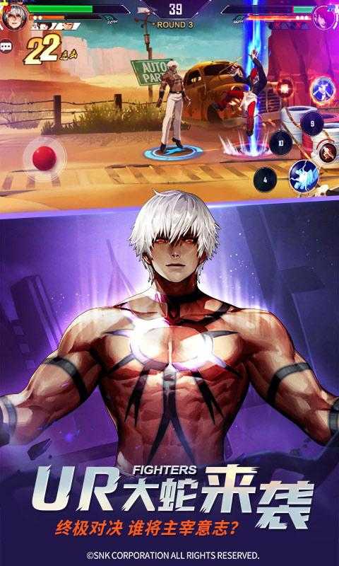 拳皇命运是由腾讯游戏独家代理发行,银汉游戏倾力打造的SNK正版授权拳皇格斗手游!拳皇经典焕新登场,格斗之魂永不熄灭!人气格斗家强势云集,打造KOF公平竞技,各种拳皇人物真实还原,创新3V3多人对战,再现街机激爽闯关,体验百分百热血真格斗!