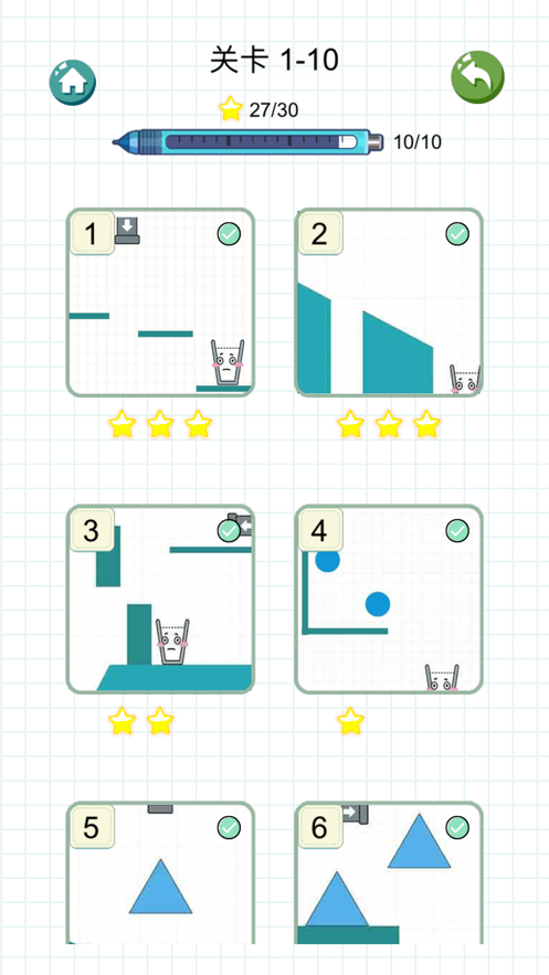 快乐水滴游戏是一款休闲益智闯关游戏。玩家在这里运用智慧来将水滴通过机关的输送到水杯中,你可以用铅笔画线来帮助水滴顺利流进杯中;每一关都有不同的机关障碍没有直接的流向杯子,你需要画出可靠的线来形成一个支撑,水流下来的时候就能顺利流进杯子中。