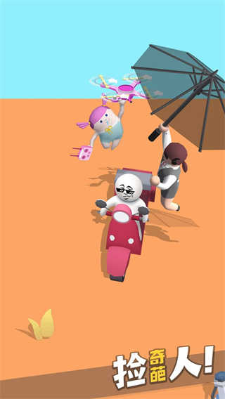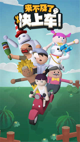 1、进入来不及了快上车游戏,我们映入眼帘的就是魔性的橡皮人风格,轻松放置玩法,玩家只需要滑动屏幕控制战车的方向即可,玩法还是比较简单的,经过地图中的吃瓜群众即可带上吃瓜群众上车,摩托车的载人上限是两名,所以玩家最多只能带上两名吃瓜群众和敌人对抗,驾驶摩托车经过敌人身边时,车上的吃瓜群众将会自动攻击,看着吃瓜群众魔性的吐西瓜籽攻击,让我忍俊不禁。