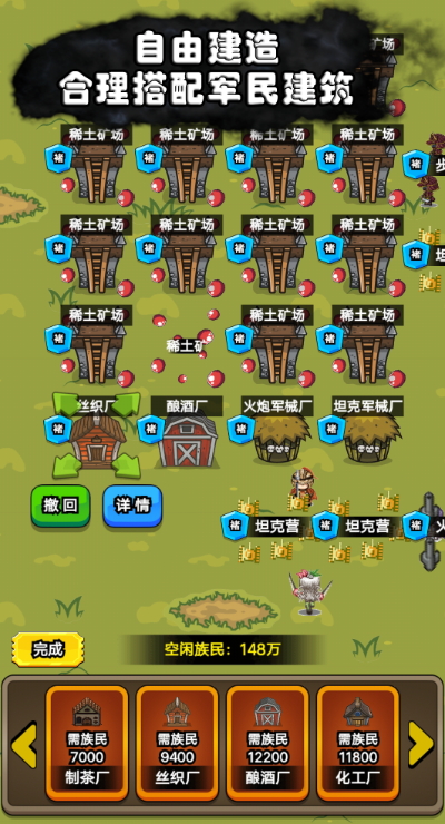 1、城市建设:玩家可以自由拖放建筑物,打造繁荣的城市。建设不同类型的建筑,如农田、工坊、训练营等,以满足族民的需求和提供资源。
