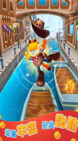 4、超萌画风下的加菲猫敏捷跑酷休闲向手机游戏,官方正版授权,给你超棒跑酷冒险