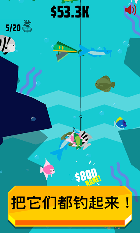 1、深海钓鱼疯狂这是一款非常好玩真实的模拟钓鱼类型休闲手游。简单的游戏操作,趣味的游戏体验。带上你的鱼竿,前往海滩钓鱼吧!这里有各种各样的小鱼,可以用不同的鱼饵钓到不同种类的小鱼。感兴趣的玩家快点下载来试试吧!