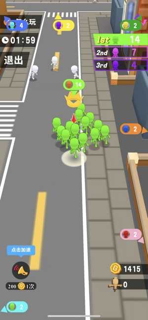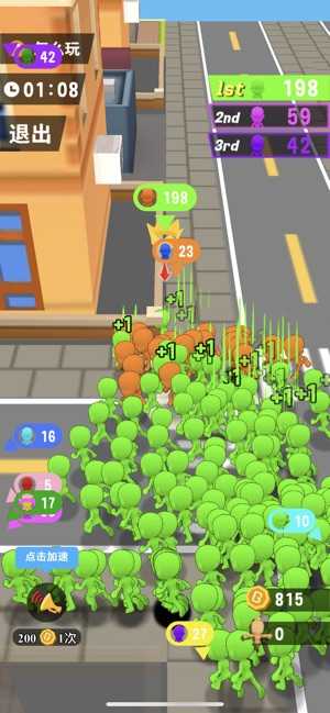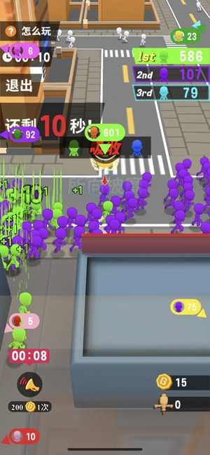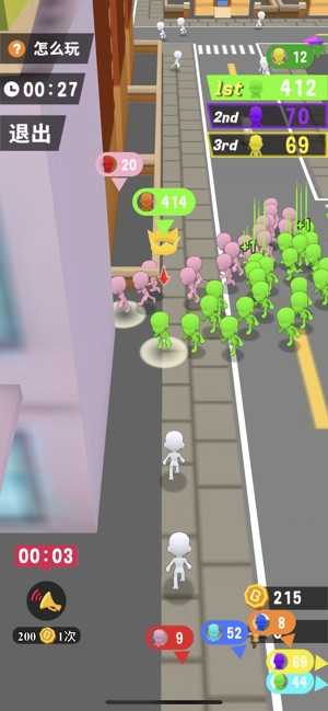 人气大作战游戏是一款节奏非常紧张刺激的游戏。两分钟一局的游戏,所有的玩家在同一个城市里提高自己的人气,让自己的身后跟随自己的人变多,逐渐的提高自己的人气。但是在游戏中,你要避开那些比你人气高的人,不然他们要巧夺你的人气。