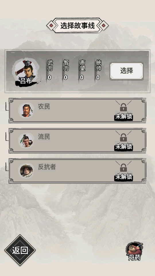 1.首先选吕布线,什么东西都不用带,直接随机分配属性;