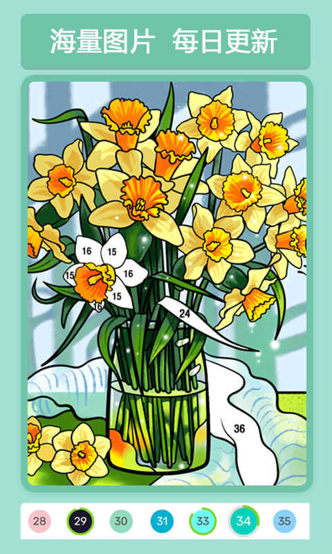 乐途数字填色2021是一款休闲娱乐的填色游戏。游戏操作非常简单,玩家只需要把自己喜欢的颜色填充到你想要填充的地方即可。在这款游戏里你能够释放压力,脑子里除了填色再也不需要有其他的事物来扰乱你的大脑,体验这个游戏带给你的宁静!