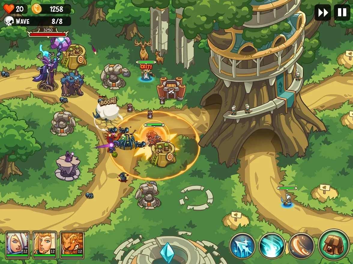 丰富的探险模式:《王国守卫战:归来》提供多变的冒险场景,包括人间平原、精灵密林、矮人山地王国、死亡沼泽、冰冻山脉等等。每个地图都隐藏着各种不同的怪物,玩家需要准备好装备和魔法道具,挑战这些怪物并战胜它们。
