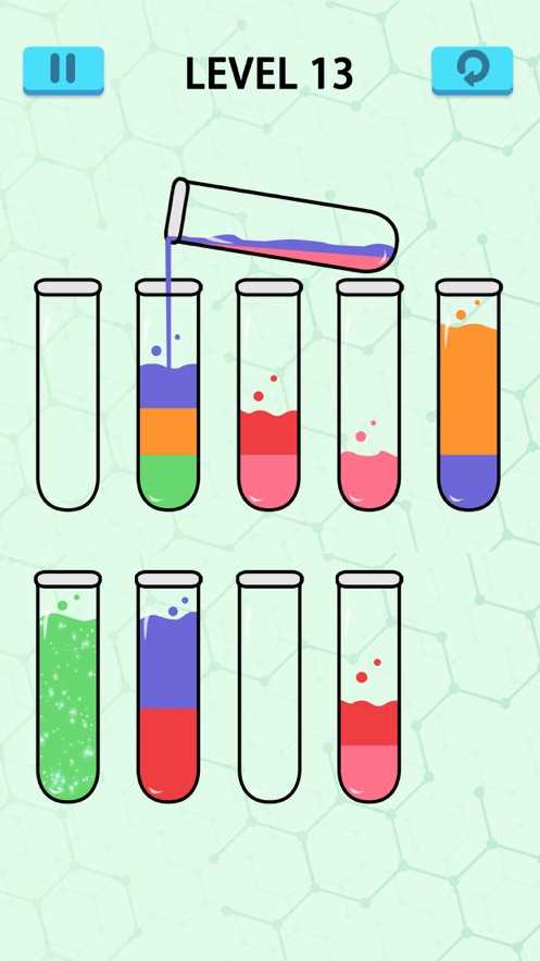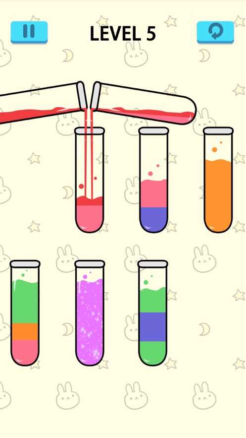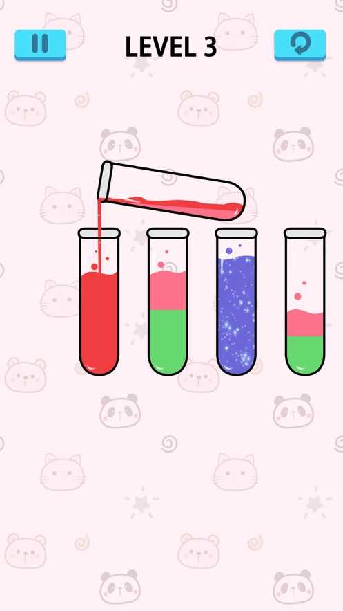 3.只有相同颜色的液体才可倾倒入试管内,才能算是通关。