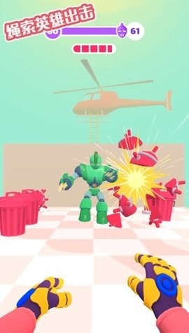 绳索英雄出击是款非常好玩的射击游戏,游戏中会有成千上万的机器人追捕你,玩家则需要用手射击磁铁绳索来打败它们,并在城市中快速穿梭,比较考验玩家的反应能力,另外,里面还带来了丰富的关卡,欢迎下载体验!