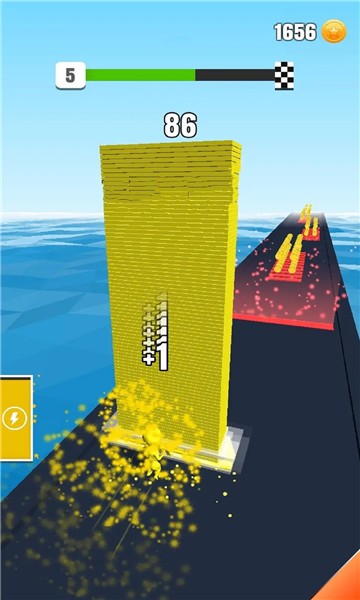 2、全新的触控向游戏玩法,玩家可以通过游戏解锁更高阶的物品以及内容,把方块越叠越高,连屏幕最后给方块致命一击。