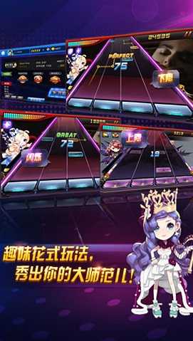由光速工作室开发的一款下落式触摸音乐节奏类益智游戏,于2012年5月25日发行。游戏采用在传统敲击音符玩法基础上加入滑动音符的操作方式,覆盖了微信、QQ好友关系链,能与好友开启挑战比拼,拥有批量流行音乐,含有pk、战队和闯关系统,还可以查看歌曲世界排名。