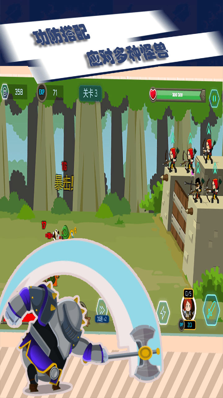 2、增量式要塞防游戏,您可以扮演弓箭手的角色,升级您的能力并保卫您的要塞。