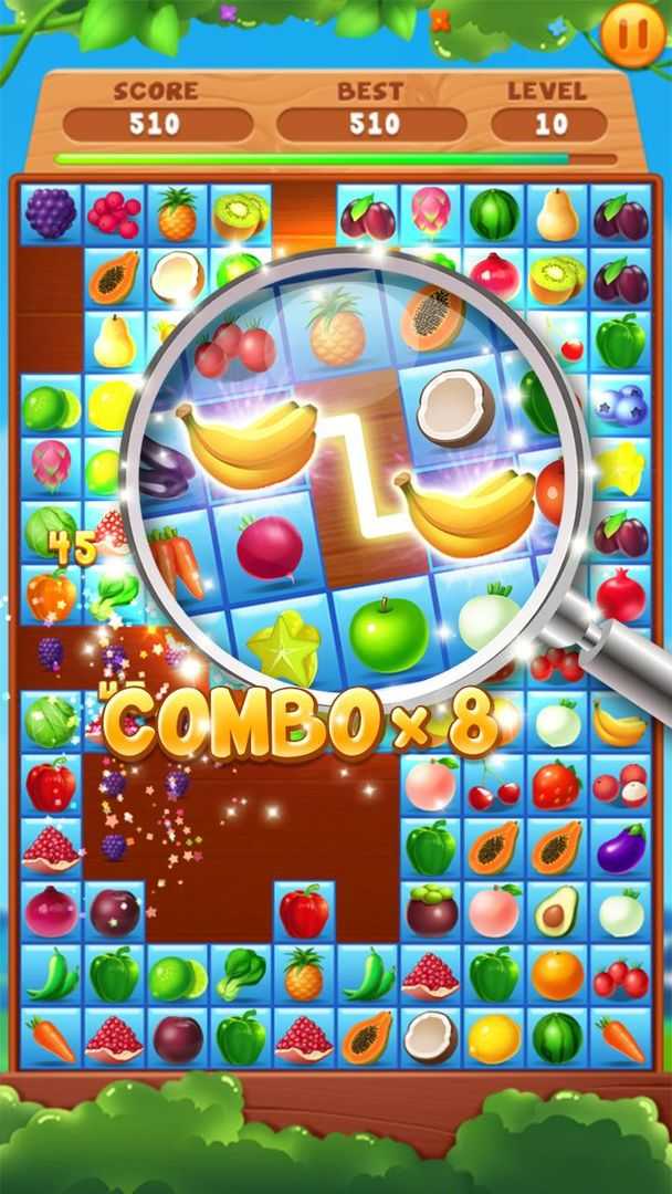 一、经典模式:连连看经典的玩法,规定时间内消除所有水果就算过关