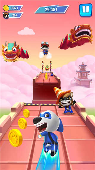 汤姆猫英雄跑酷国际服游戏中有非常多的角色可以自由选择,安吉拉、汉克狗、金杰猫等等,一切都根据玩家的喜好来,游戏中还为玩家提供了丰富细腻的场景关卡地图,在跑酷途中会遇到各种各样的障碍物,玩家需要小心躲避哦!随时开启一场酣畅淋漓的跑酷之旅。