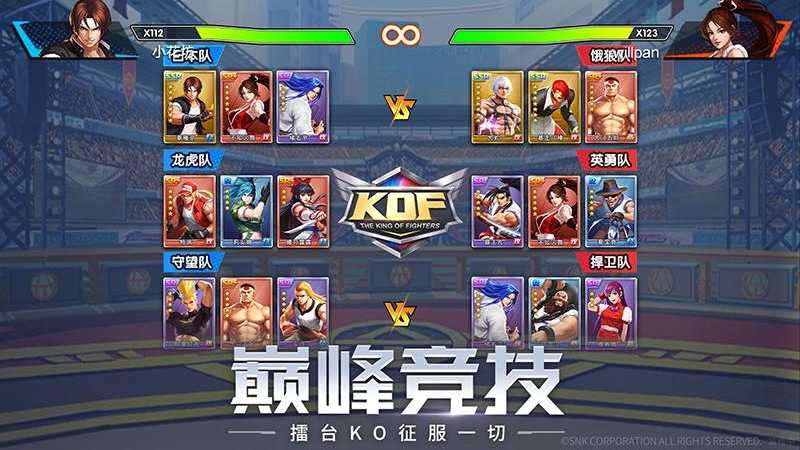 多样的养成线加丰富的培养玩法,让你随心所欲培养心爱格斗家至极限,自由组建最强战队,和好友一起征战拳皇全明星世界!