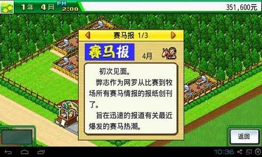 1。玩家要一边经营牧场一边培养赛马,好赛马胜出比赛的话还会提高奖金水平,一直赢得比赛的话还可以到海外参赛。