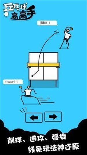 乒乓高高手是一款乒乓球题材的双人竞技对战手游。游戏画面相当简约,玩家都以火柴人的形象出现,点击左右键控制角色改编方向,就可以自动回击球。看似简单,但是非常考验玩家的手速和反应。玩起来相当魔性,非常适合无聊的时候打发时间。喜欢的话就快来本站下载吧!