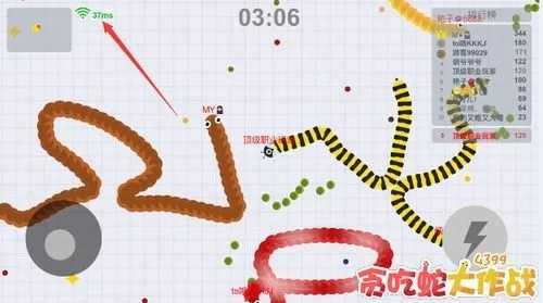 3.长按加速键,用巧妙的走位让蛇身被别人撞上,即可以吃掉他们。