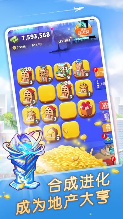 1.玩家继续升级网格中的房屋等级,以赚取最初的更高收入。通过经营自己的房地产来赚取租金。