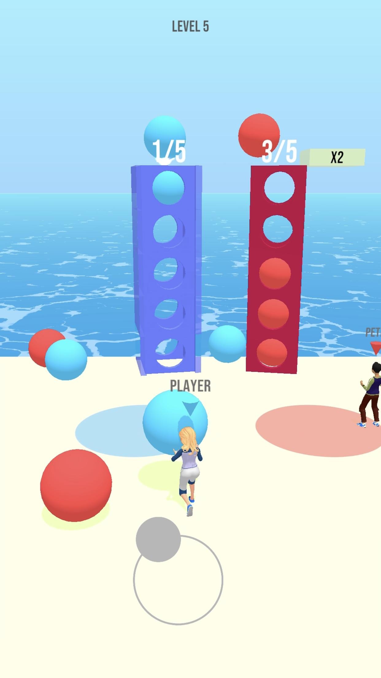 卡通风格的趣味竞技游戏,玩家和对手会拿着健身球在关卡进行各种比赛