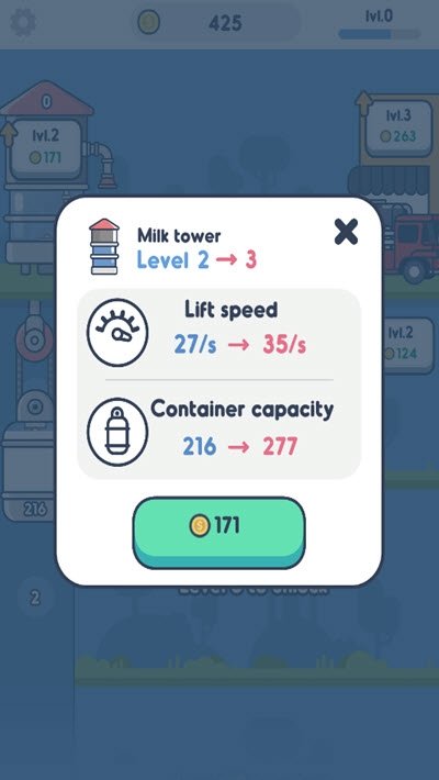 牛奶制作厂制作出更多高品质的牛奶,吸引更多的顾客,赚取大量金币,进一步扩大生产。