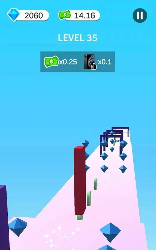 欢乐的果冻跑酷比赛开始,你要学会变形来通过各种障碍,沿路的金币和钻石可以收集。