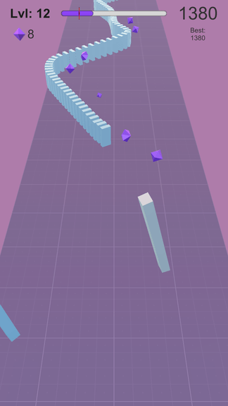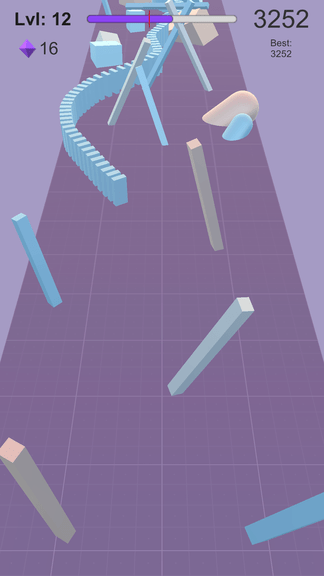 2、让多米诺骨牌完美的全部击倒,不断的收集紫色的宝石提升等级