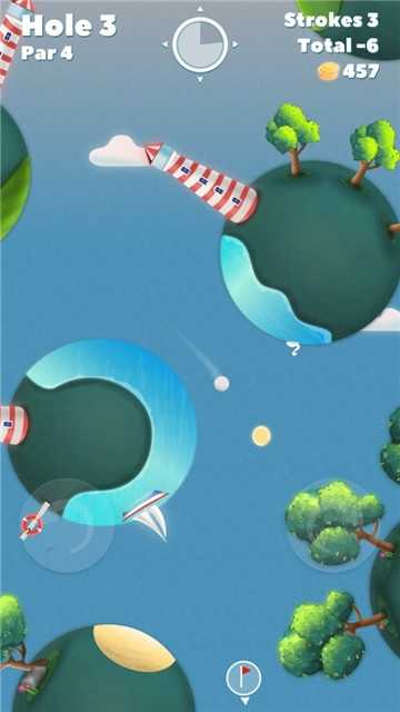 4、游戏中的一颗颗星球就是你的高尔夫场,在充满星球的世界打高尔夫。