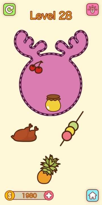 玩家需要将各种形状不同的食物放置在奇形怪状的盘子里,看似简单的玩法,实际在将食物放置在盘中还不能让让它们产生碰撞,这样就比较有挑战性了,而且每一关的盘子形状都不相同,非常的考验玩家的空间想象整理收纳的能力。盘子有着各种各样的形状,关卡难度会一步步升级,游戏也会越来越具有挑战性。发挥智慧,利用盘子上的每一寸空间,合理的放置食物,非常考验玩家的思维能力。规则很简单。只需将食物拖入盘中即可!容易玩,令人着迷!完成益智游戏。