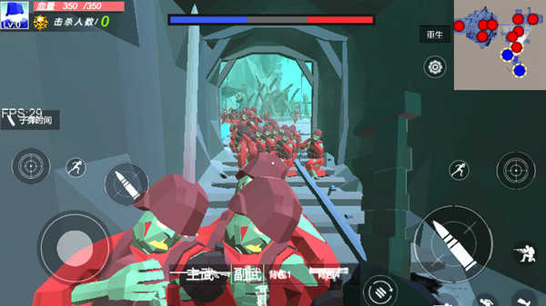 5、大家在游戏中可以看到左边轮盘可以操控方向,右边轮盘可以射击,切换子弹、枪械等。