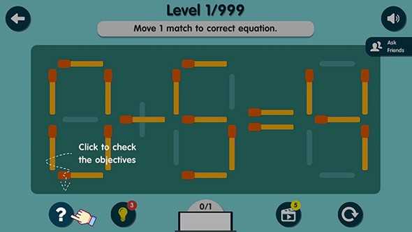 火柴谜题,挑战你的大脑,用拼火柴棒拼数字做数学题。
