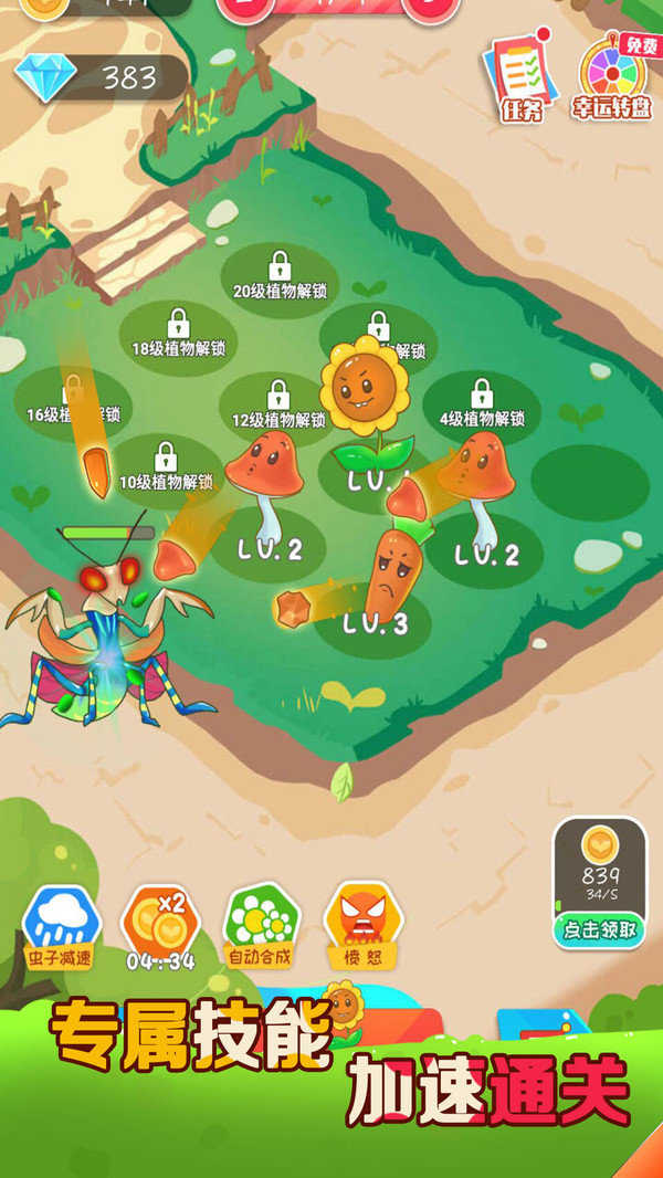 空闲系统,你的花花会自动对抗害虫,即使您处于离线状态,也可以获得金币;