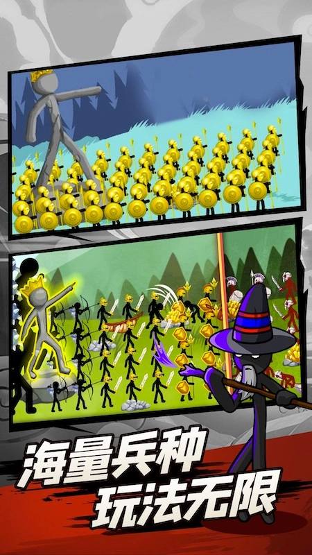 公平的分配资源,建立完善的战略体系,集结火柴人士兵和各种武器装备,为即将到来的战争做好准备!