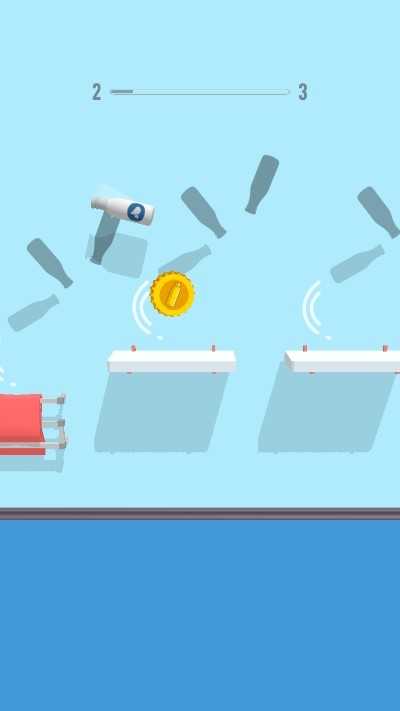 魔法跳跳瓶用适当的力道掷出瓶子并让它直立落地。点击屏幕并观看瓶子翻转!达到终点以晋级到下一个房间。闯过的关卡越多,奖励就越棒,游戏采用卡通画风,你将在这里不断挑战自己的节奏感和手速,保证瓶子落在台阶上,游戏操作十分简单,只需要玩家在适当的时候去点击屏幕,让瓶子能够顺利地跳到另一个平台上面。游戏关卡众多。