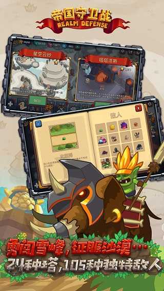 帝国守卫战手游游戏的背景设定在一个中世纪的王国,玩家需要扮演一位皇家指挥官,率领军队对抗入侵的敌人。游戏中的敌人有各种不同的种类,需要玩家利用不同的防御塔来进行应对。游戏的画面精美,玩法有趣,策略性较强。同时,游戏的难度也比较适中,不会让玩家感到过于困难或无聊。
