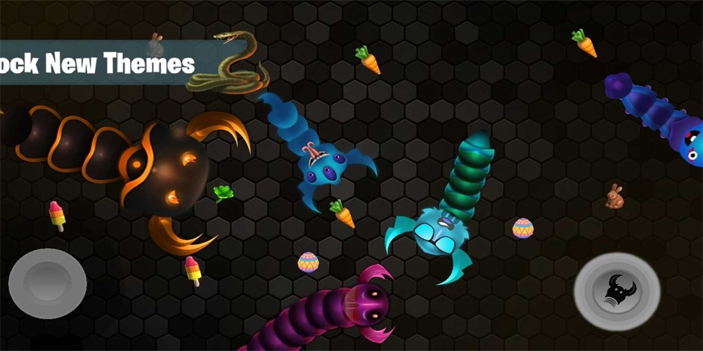 1、游戏继承贪吃蛇玩法,玩家需要不断的进食成长,游戏玩法简单易上手。