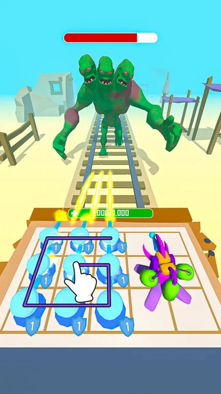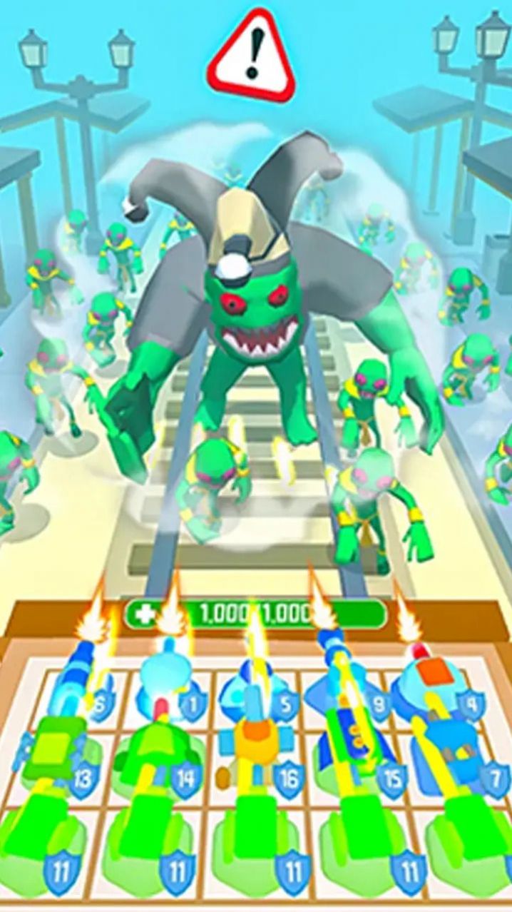 1)简单明了的玩法,通过合并和升级火车车厢来建立强大的防御力量。