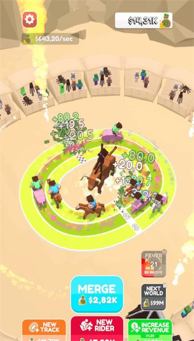 牛仔竞赛是一款像素方块的牛仔赛马竞速类游戏,玩家可以通过多人的赛马比赛,赢得大量奖励以及金币,还可以解锁不同的动物,完成竞速挑战,上帝视角的游戏操作模式之中,会展现十分丰富的趣味特点,魔性的像素方块画面,也能将更为魔性的元素呈现出来,清新明亮的色彩,会全面衬托游戏过程,带给玩家更多有趣的游戏体验。