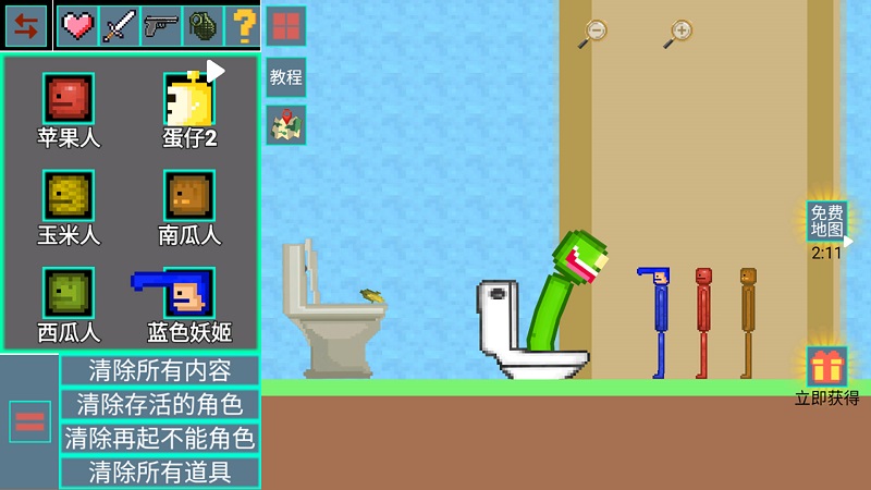 甜瓜超人乐园是一个自带免费模组的像素甜瓜乐园冒险闯关类游戏,火柴人们的全新关卡挑战,会通过辅助功能菜单,以及更多不同玩法的精彩挑战来完成,游戏中设置了多个不同的地图可供选择,免费模组以及自由功能数据挑战的游戏特点,会让这个甜瓜超人乐园游戏的可玩性上限变得非常高,其中的玩法也都能让玩家感受到非常刺激的。