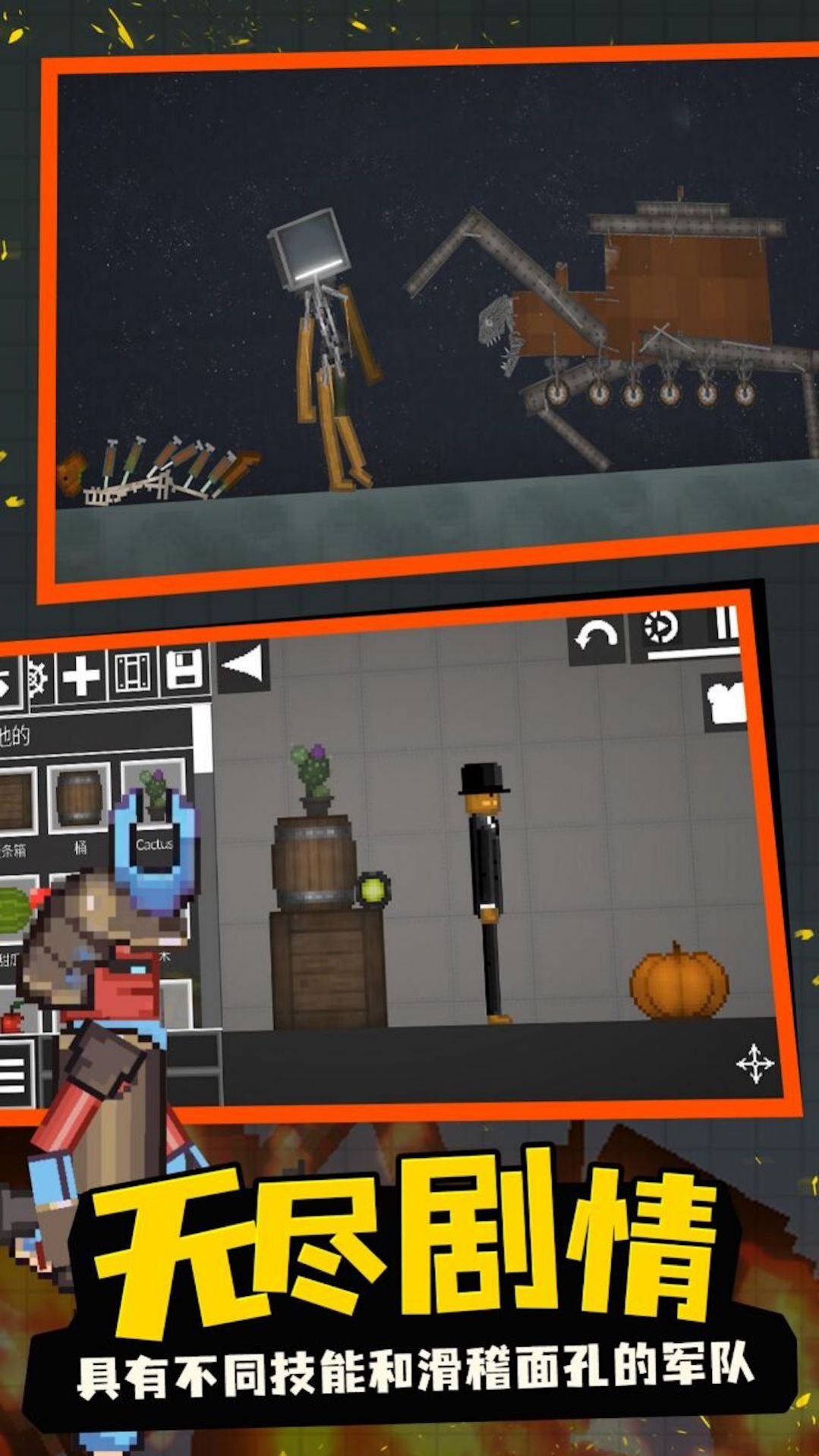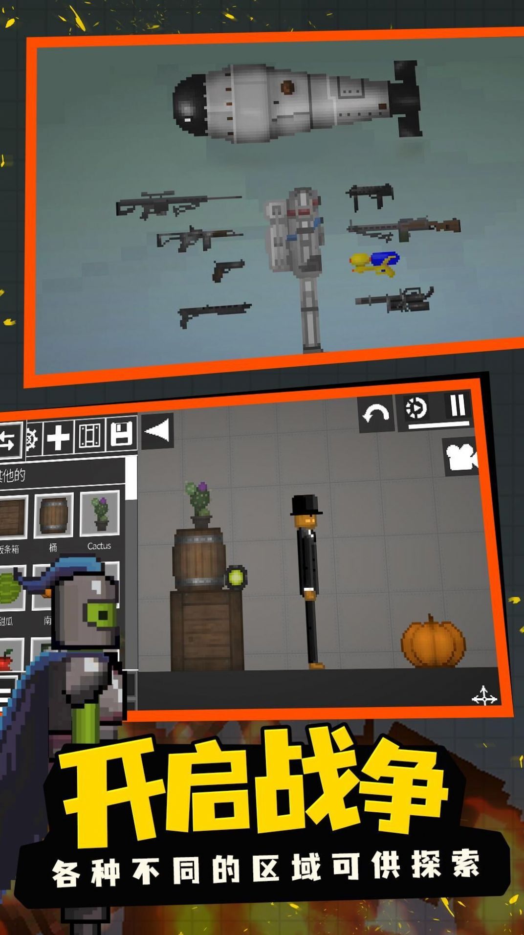 怪物生存游乐场是一款像素风的甜瓜乐园世界动作冒险类游戏,这一次将会以战争的模拟展开其中的对决,火柴人的精彩剧情互动,以及与强大怪物之间的热血对决会随时展开的,数十种免费武器模组任由玩家解锁使用,还有更多惊险挑战都可以自由开启,大规模的激烈战争即将展开,玩家也必须灵活应对其中的精彩挑战。