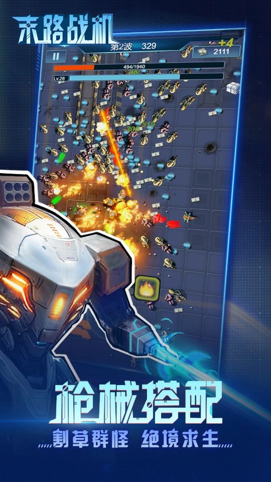 末路战机是一款科幻时代背景的太空战斗飞机弹幕式射击冒险闯关类的游戏,超爽的射击作战玩法,也能带给玩家十分精彩的体验,炫酷炸裂的打击效果,会不断迸发出更多特效,各种划时代的强大Boss,都需要玩家通过强力的科技武器消灭它们。游戏玩法超爽,结合科幻时代背景的设定,展现出极为炫酷的视觉效果。