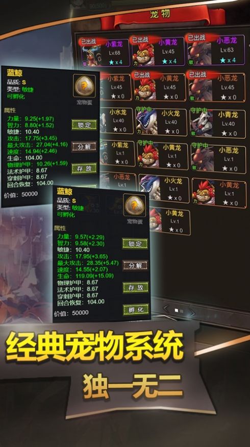 3.享受不同的角色玩法乐趣,并可以招募各种可爱的宠物来辅助作战和提高属性。