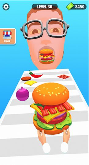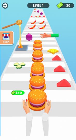 堆栈汉堡跑酷让玩家在一个充满挑战的世界中搭建和跳跃堆叠的汉堡。每当你成功放置一个汉堡层,平台就会继续前行,同时还会不断出现新的食材和障碍物。随着汉堡层数的增加,游戏的难度也会逐渐提升。你可以根据自己的喜好,选择搭建各种美味和独特的汉堡,喜欢的小伙伴来试试看吧。