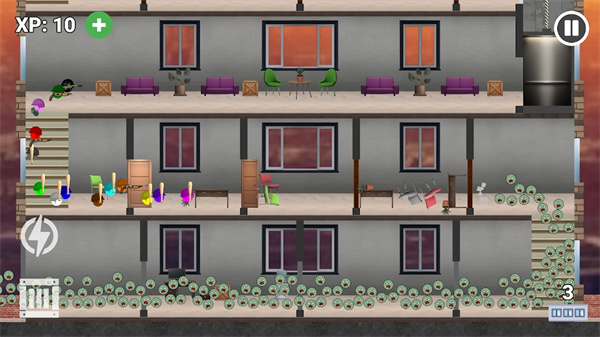 僵尸塔逃脱是一款末日世界的动作冒险生存闯关的游戏,海量僵尸如潮水般发起进攻,玩家必须快速攀登不同的逃生地点,利用关卡中的道具组成障碍,拦截僵尸,必要时可以使用武器疯狂消灭来袭僵尸大军,游戏玩法十分刺激,并且伴随着丰富的内容特点,超爽的激情玩法挑战,也都可以让每一个玩家轻松上手的。