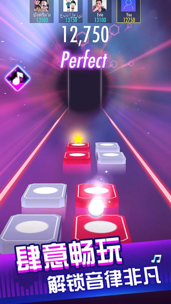 这里有着海量的音乐可以选择,在关卡中不断地挑战你的分数,还可以与你的朋友一同竞技比拼。