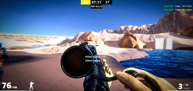3、感受激烈的战斗,利用狙击瞄准镜、瞄准和射击技巧完成高风险的狙击任务。